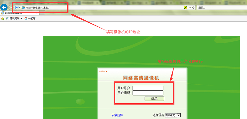 1.在電腦瀏覽器輸入攝像機的IP地址按回車,按提示安裝插件,輸入攝像機用戶名密碼,點擊確定;