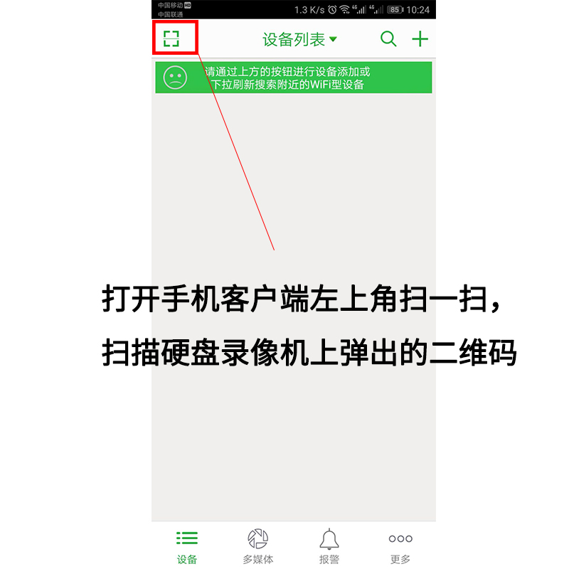 3.打開“seetong”客戶端左上角的掃一掃,掃描硬盤錄像機(jī)彈出的臨時(shí)二維碼;