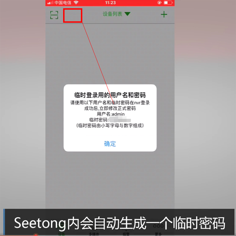 4.掃描后“seetong”會(huì)生成一個(gè)臨時(shí)的密碼,在硬盤錄像機(jī)的登錄界面輸入臨時(shí)密碼,登陸成功后按照提示重新設(shè)置密碼即可。