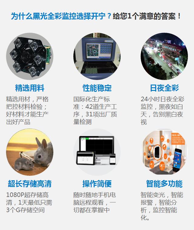 開寧智能黑光全彩網絡高清攝像機,24小時日夜全彩監控,夜晚監控如白天,徹底告別黑白夜視。