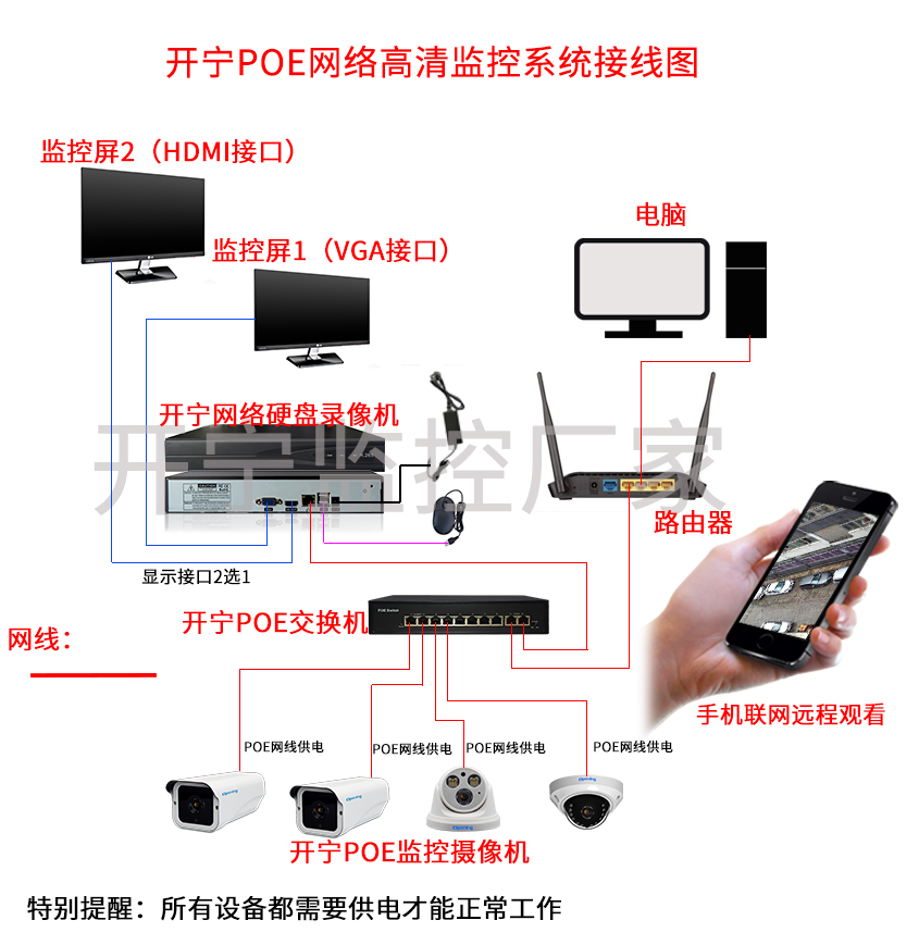 POE網絡高清監控系統接線圖 (點擊進入大圖)