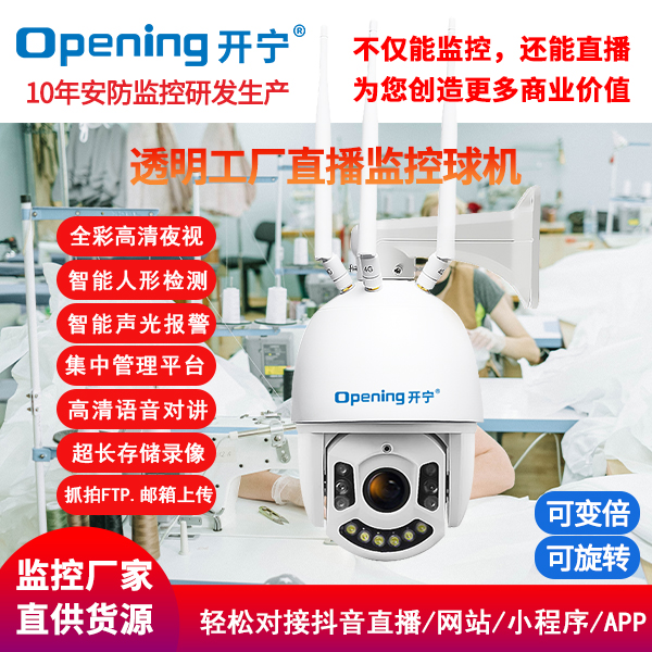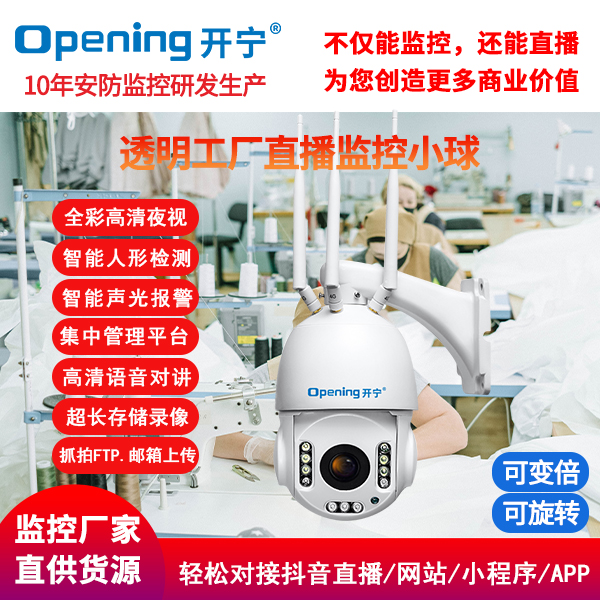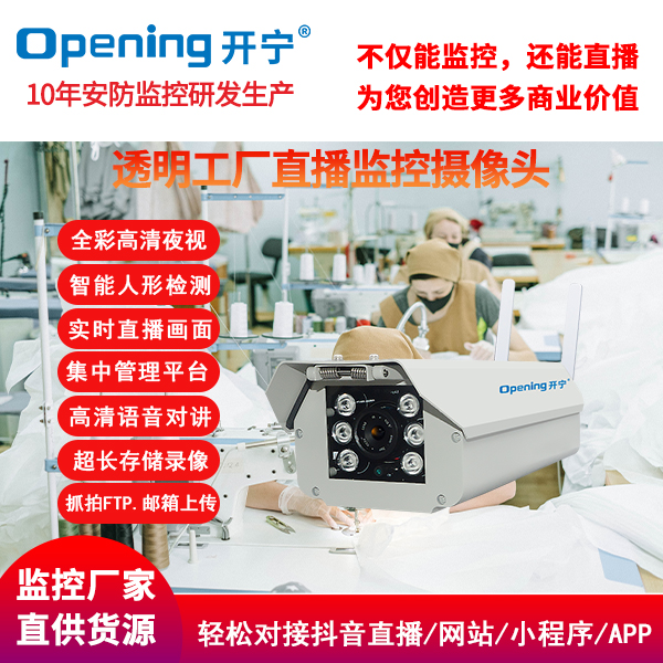 開寧視訊結合自身研發技術優勢,推出了開寧直播監控攝像頭系列產品,為更多的傳統工廠打造“透明工廠”,提高知名度,帶來更多的客戶,創造更多的商業價值!