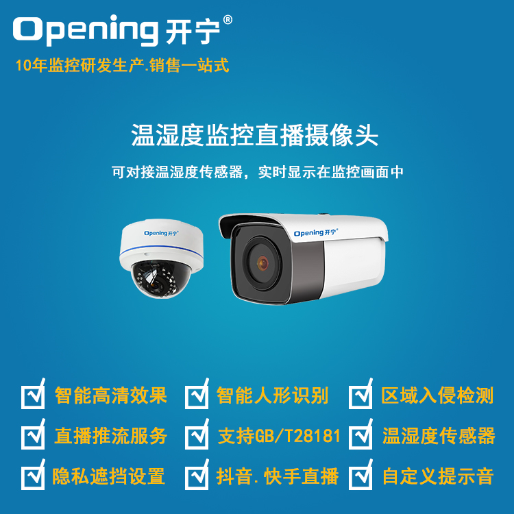 開寧溫濕度監控攝像機可以24小時實時監測大棚內的溫度、濕度等數據,直接把數據實時顯示在監控攝像機畫面中,手機、電腦隨時隨地可以觀看,可以直接通過監控攝像機畫面就了解大棚的環境及作物的生長情況,提高對大棚內的環境的了解,工作效率提升了,人工成本也在降低了!