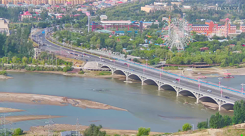 伊犁河大橋位于新疆伊犁地區伊寧境內,是伊犁第一座現代化橋梁,建于1975年,橋面寬8.5米,長300.84米,全橋工九孔,遠眺九個拱孔加九張巨吃支撐著筆直的橋面凌空跨越天塹,顯得異常雄偉壯觀。
