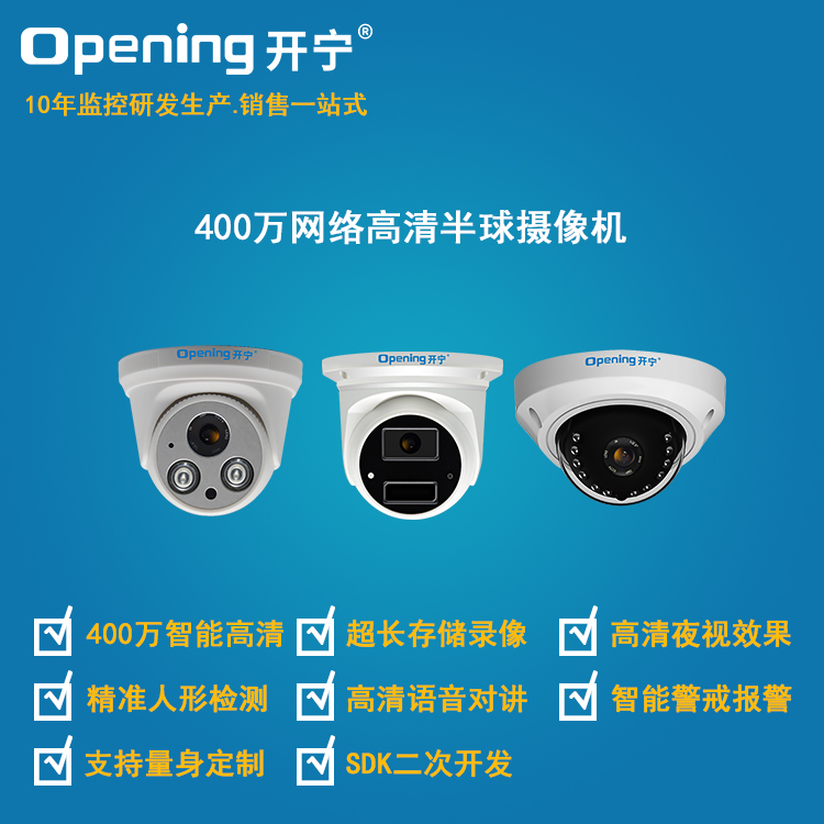 - 開寧400萬網絡高清半球攝像機8大優勢: