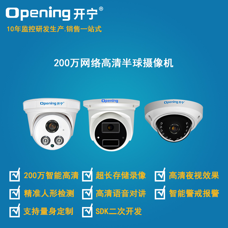 - 開寧200萬網絡高清半球攝像機8大優勢: