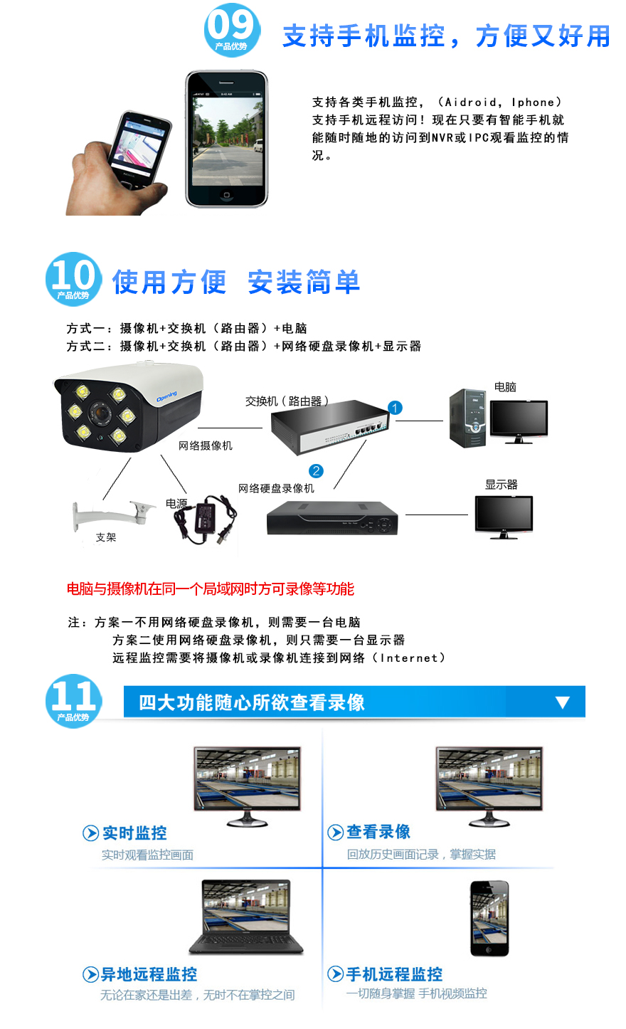 ★適用場所:小區(qū)、工業(yè)園區(qū)、學校、工廠、別墅住宅、果園、養(yǎng)殖場、停車場、醫(yī)院、公園、政府單位等監(jiān)控場所。