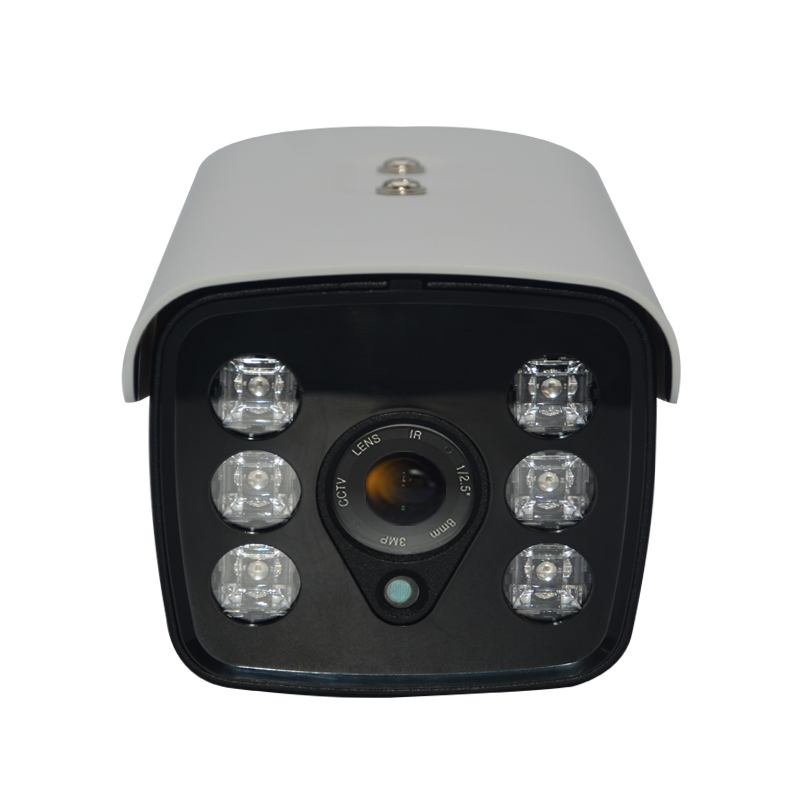 ★6顆晶元LED紅外陣列燈,紅外20-70米,300萬高清定焦鏡頭(4mm/6mm/8mm可選),IP66防水全金屬外觀,DC12V供電。