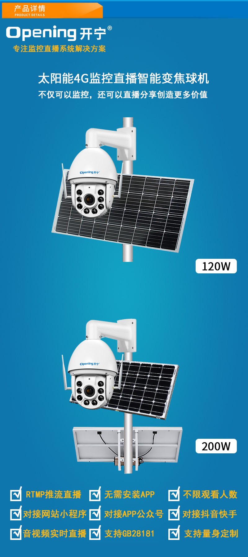 14、可另外配置高清晰大功率喇叭,APP語音對講,智能語音警戒報警;可另選配太陽能供電系統;
