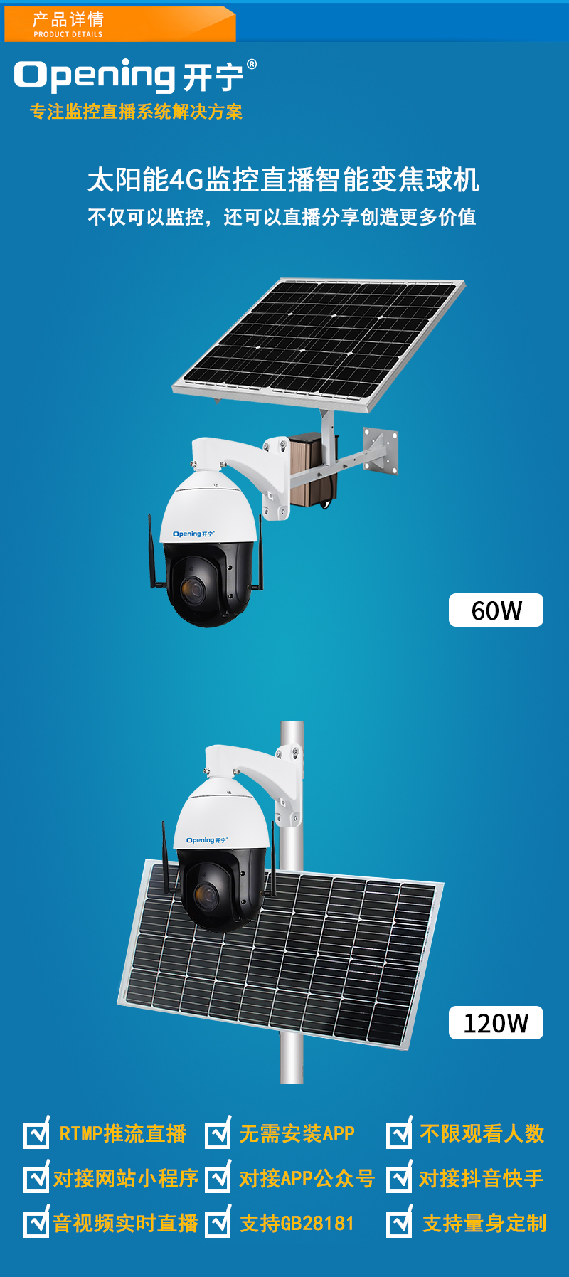 14、可另外配置高清晰大功率喇叭,APP語音對講,智能語音警戒報警;可另選配太陽能供電系統;