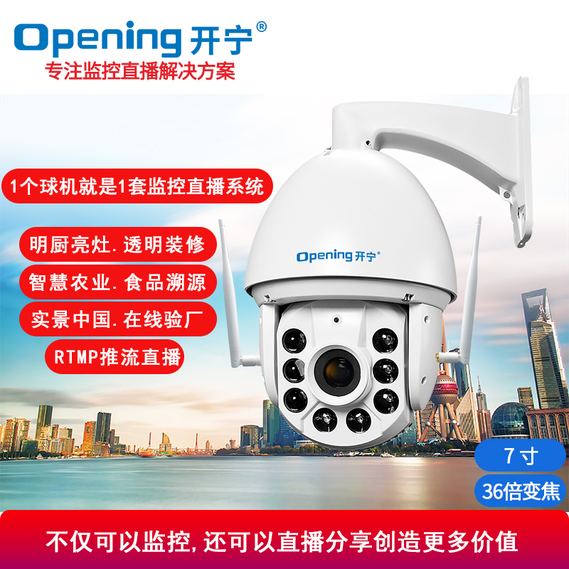 - 1、300萬/500萬/800萬7寸36倍監控直播智能高清球機,一個球機就是一套監控直播系統;支持360度旋轉,最高轉速可達60度/S,支持預置點和巡航,36倍光學變焦,半金屬外觀,IP66防水等級;