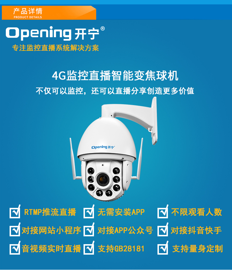 5、RTMP推流直播高清攝像頭;可生成監控直播二維碼,只需掃碼即可觀看監控直播;