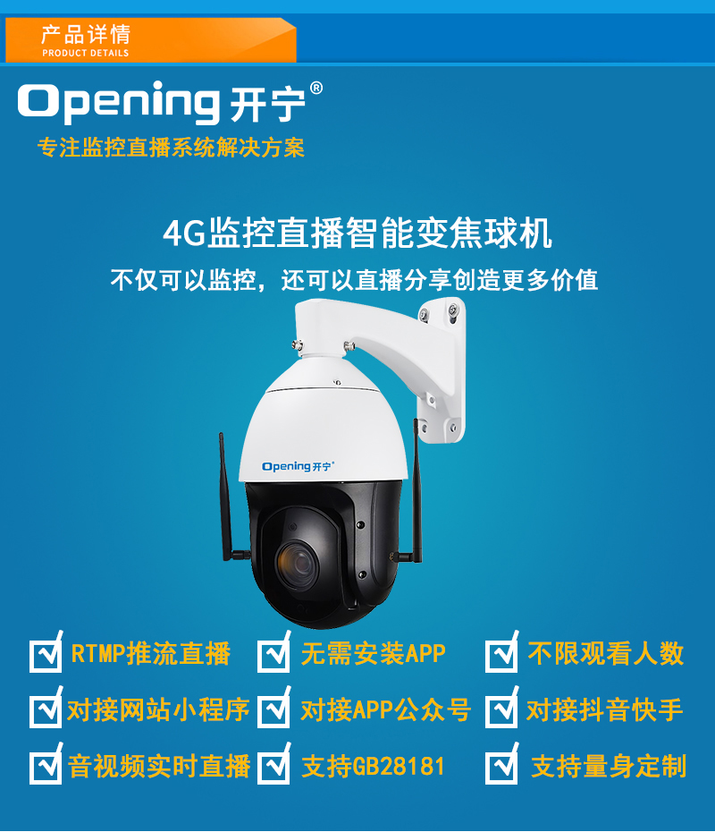 5、RTMP推流直播高清攝像頭;可生成監控直播二維碼,只需掃碼即可觀看監控直播;