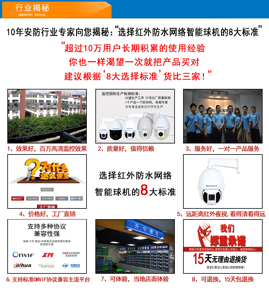 ★強大兼容性,支持標(biāo)準(zhǔn)的ONVIF,無縫對接海康,大華,雄邁CMS,美電威視AEVISION,Milestone等平臺,支持RTSP實時流協(xié)議,支持大華、海康3D控制協(xié)議;