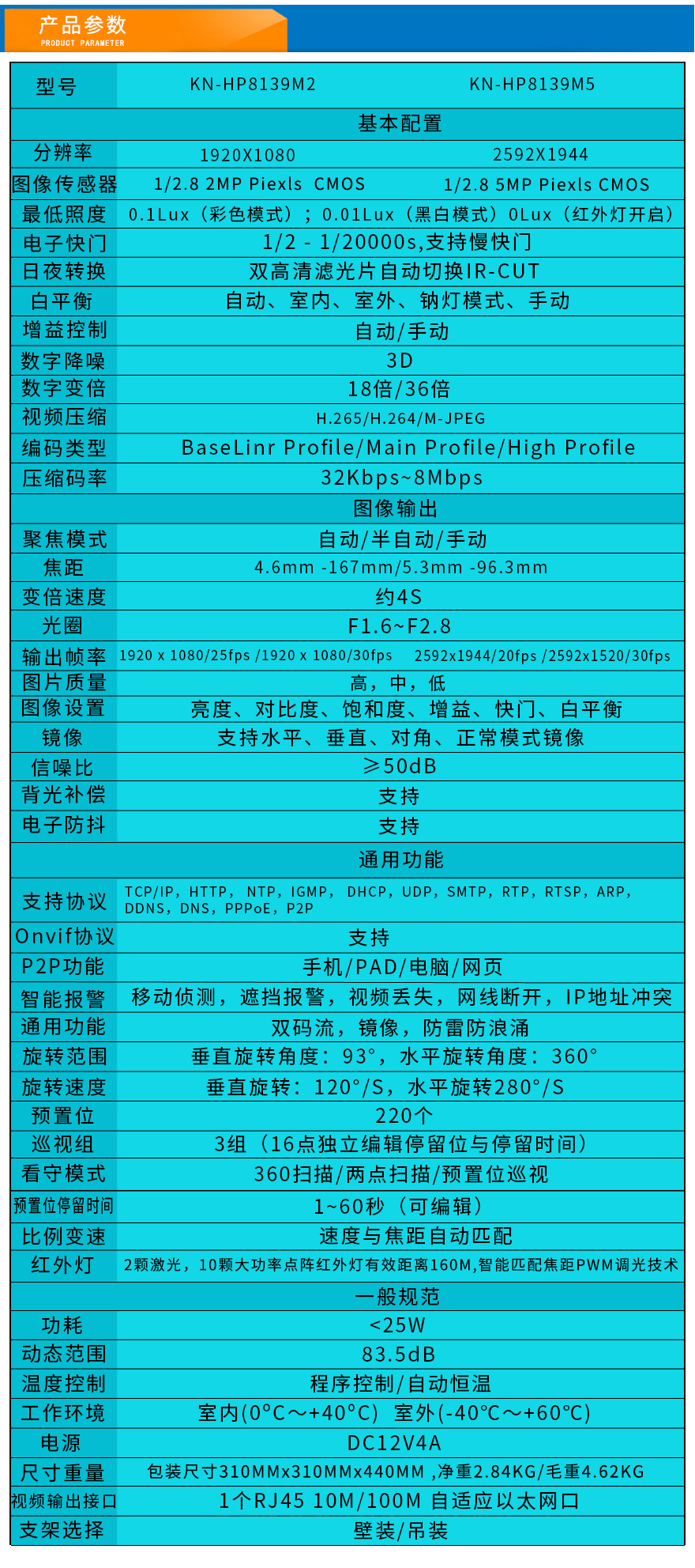 - 紅外防水網(wǎng)絡(luò)智能球機 KN-HP8139M2