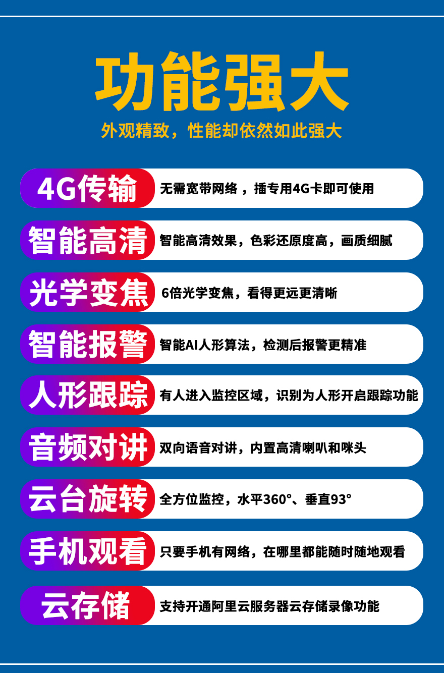 - 1、4G無線變焦智能全彩小球,一個小球就是1套監控系統;