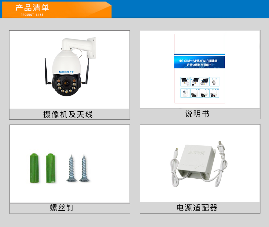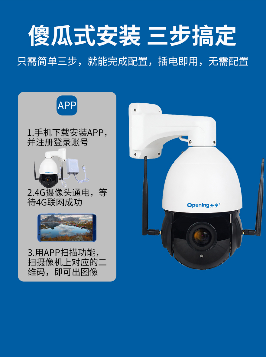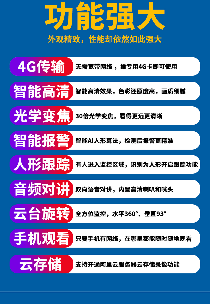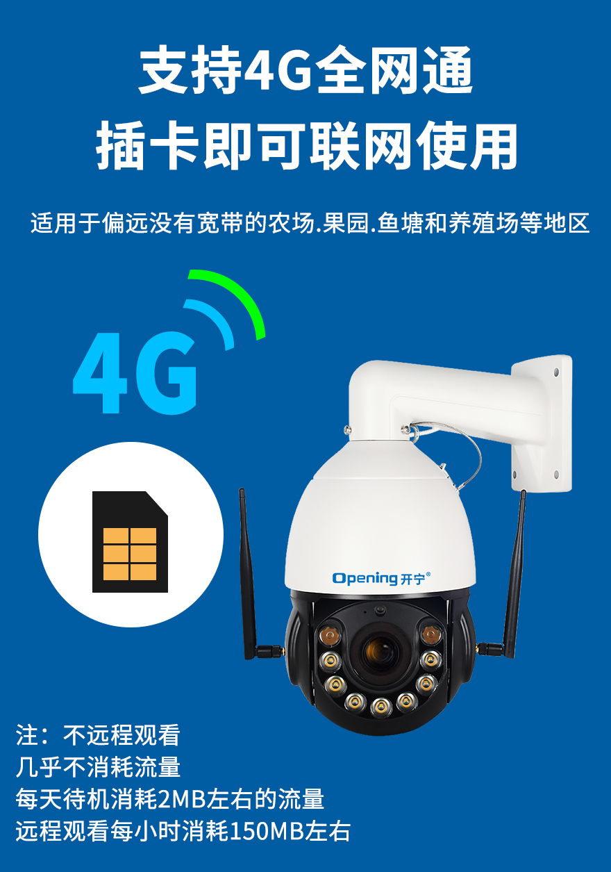 - 1、200萬(1080P)4G無線變焦智能高速球,一個球機就是1套監控系統;