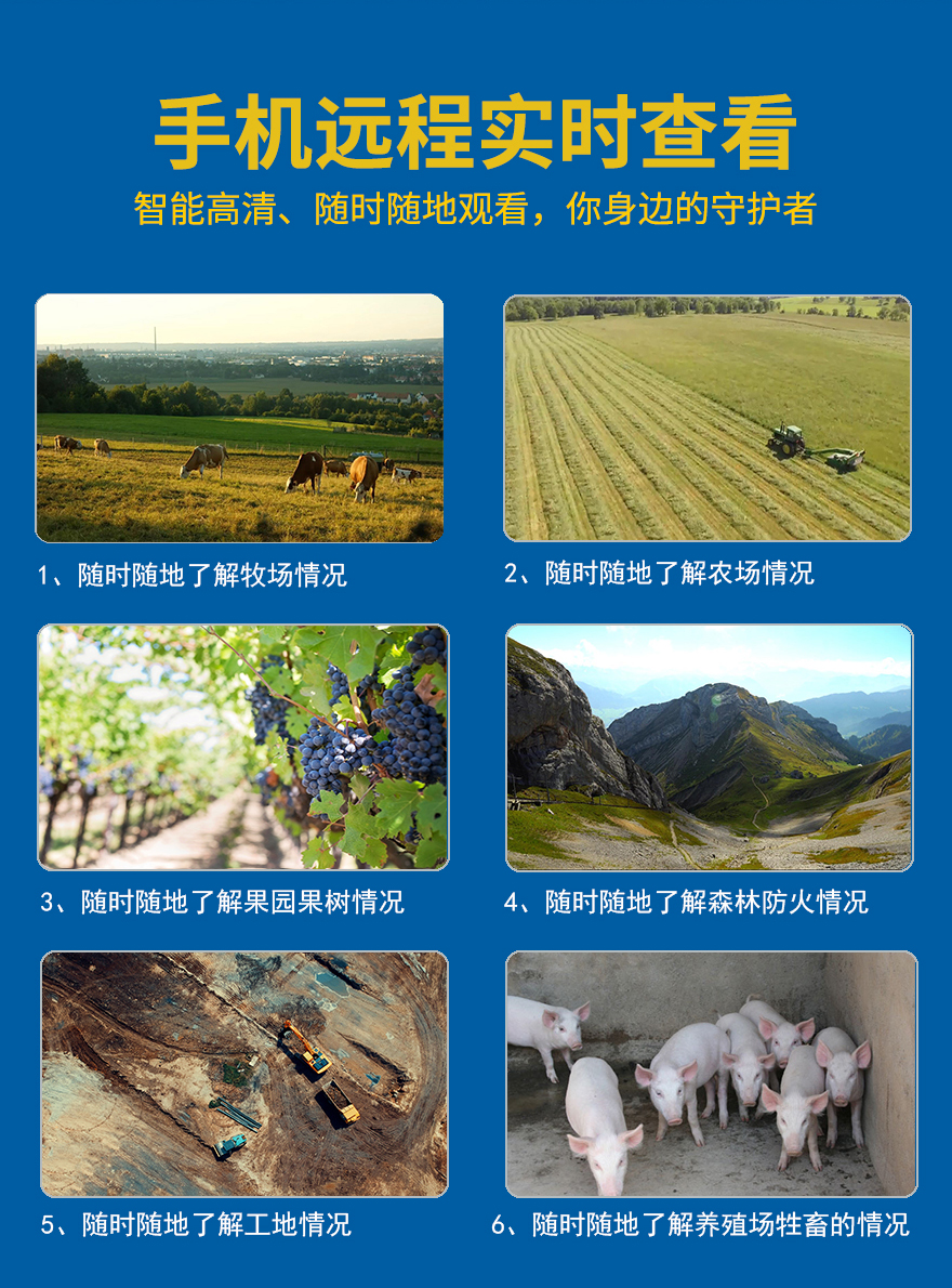 2、內置智能4G模塊;適用場所:養殖/種植/工地/公園/公路/野外等沒網絡地方;