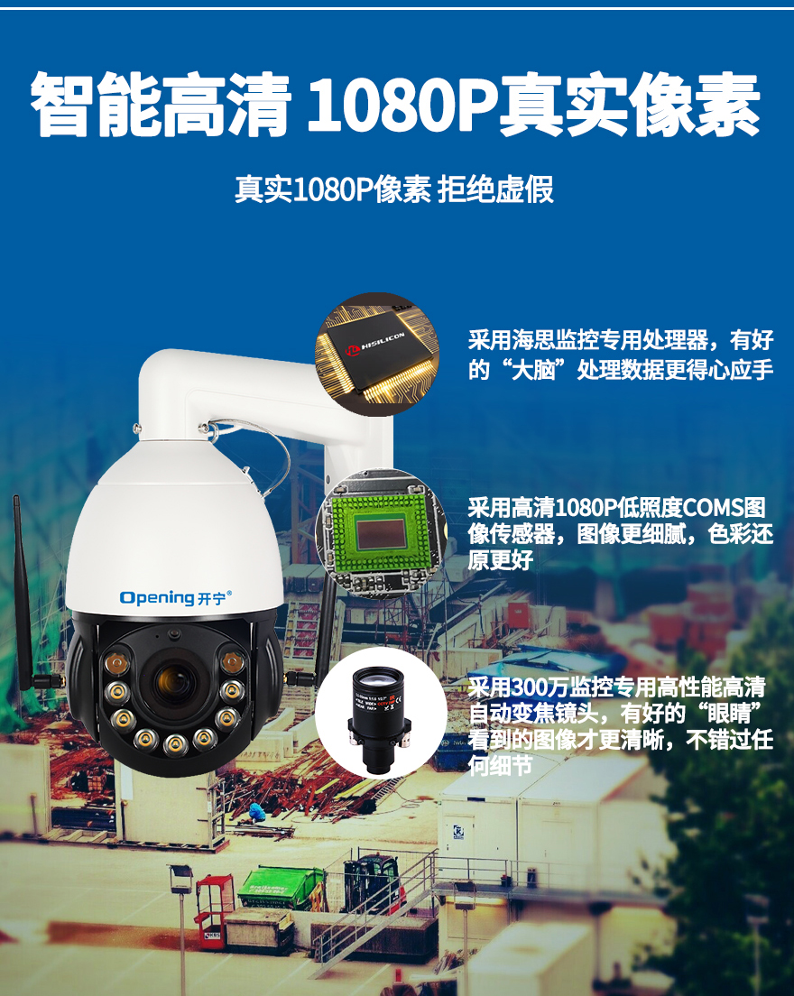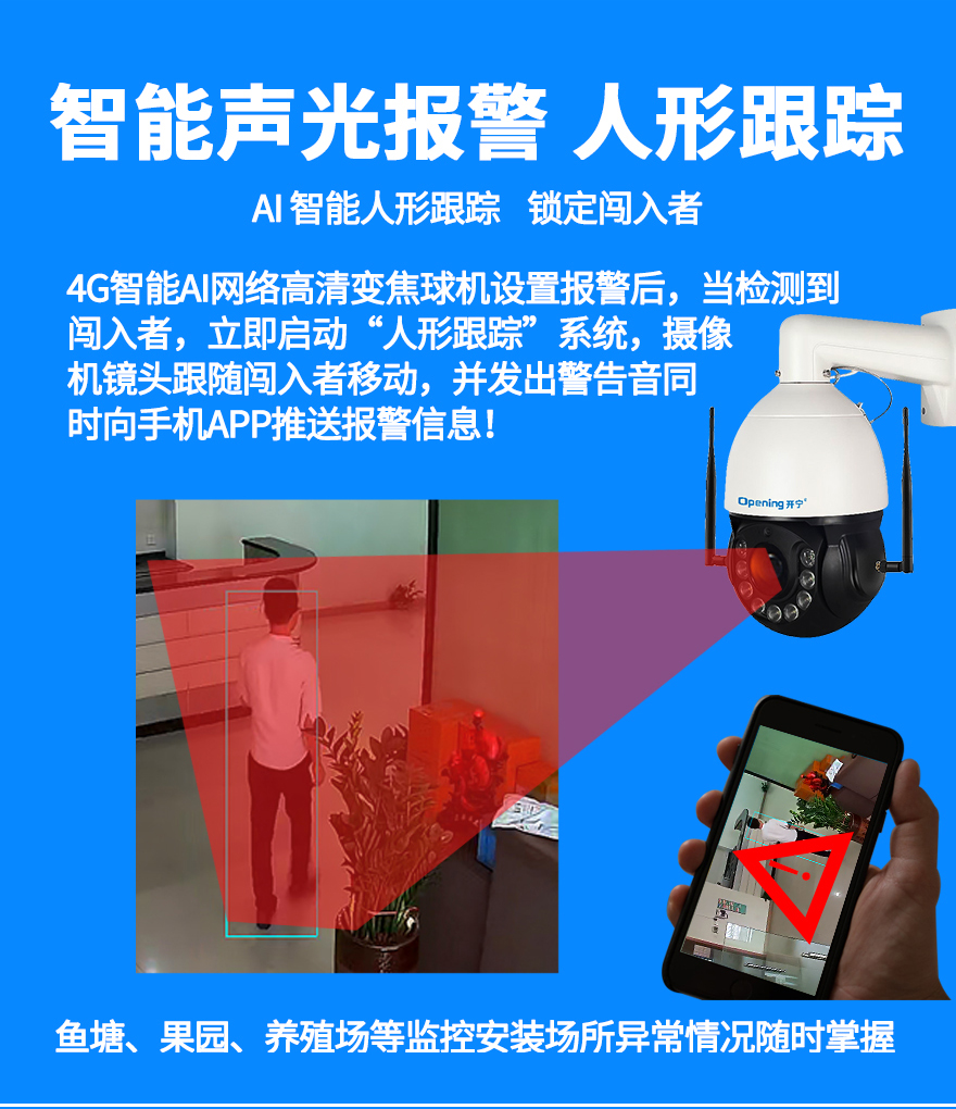 - 1、200萬(1080P)4G無線變焦智能高速球,一個球機就是1套監控系統;