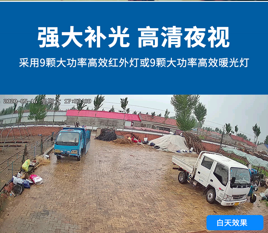 10、9顆高效能點陣紅外燈或9顆高效能暖光燈,夜視80-120米。