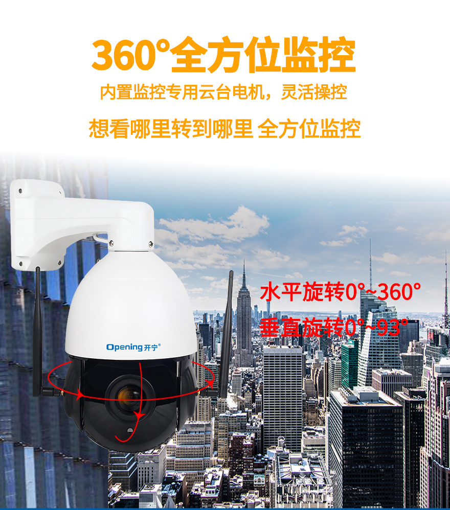 3、6寸30倍變焦球,可拉遠拉近;水平旋轉:0°~360° ; 垂直旋轉:0°~93°;