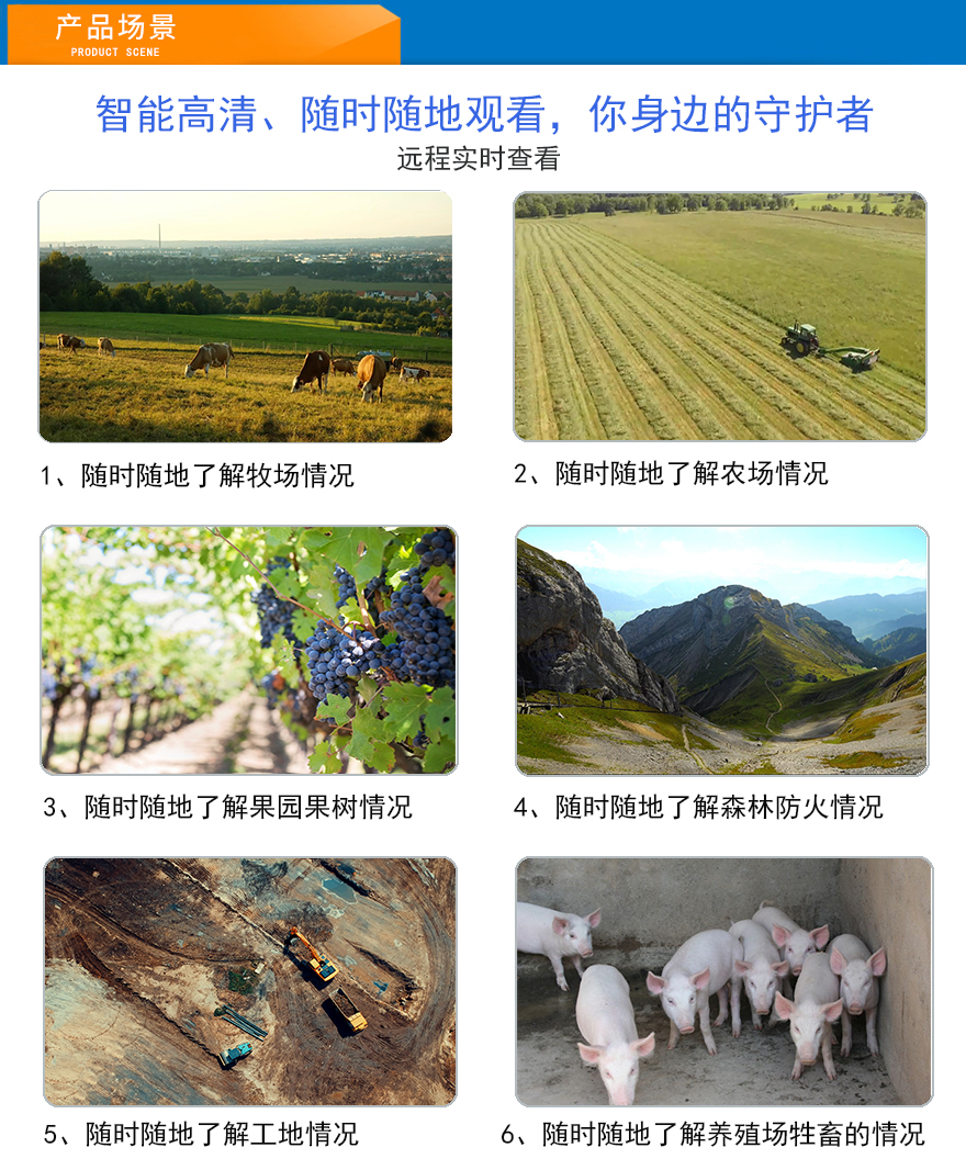 2、內置智能4G模塊;適用場所:養殖/種植/工地/公園/公路/野外等沒網絡地方;