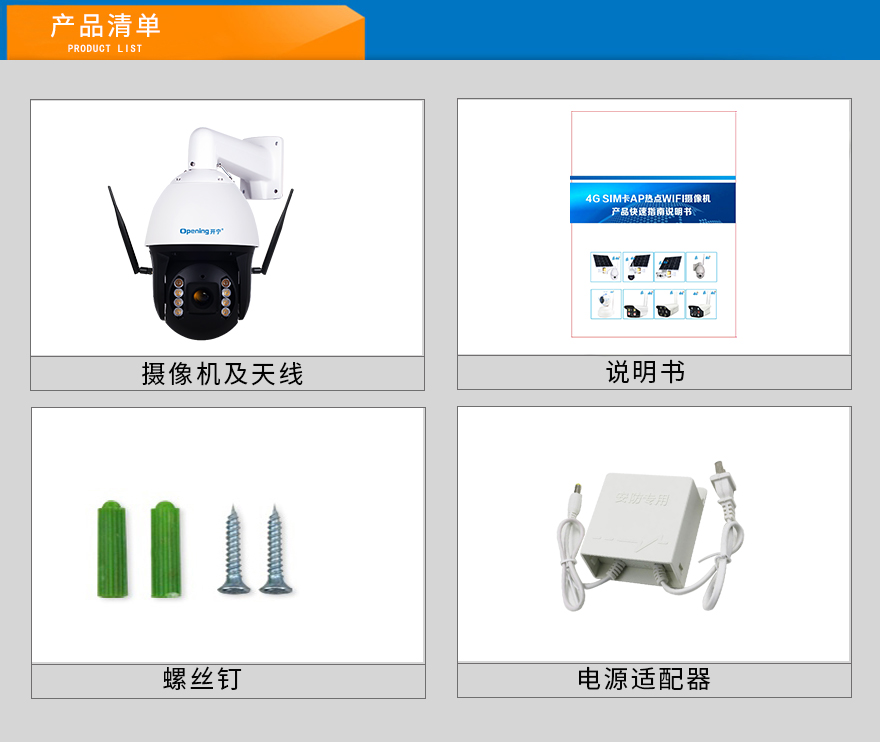- 1、200萬(1080P)4G無線變焦智能高速球,一個球機就是1套監控系統;