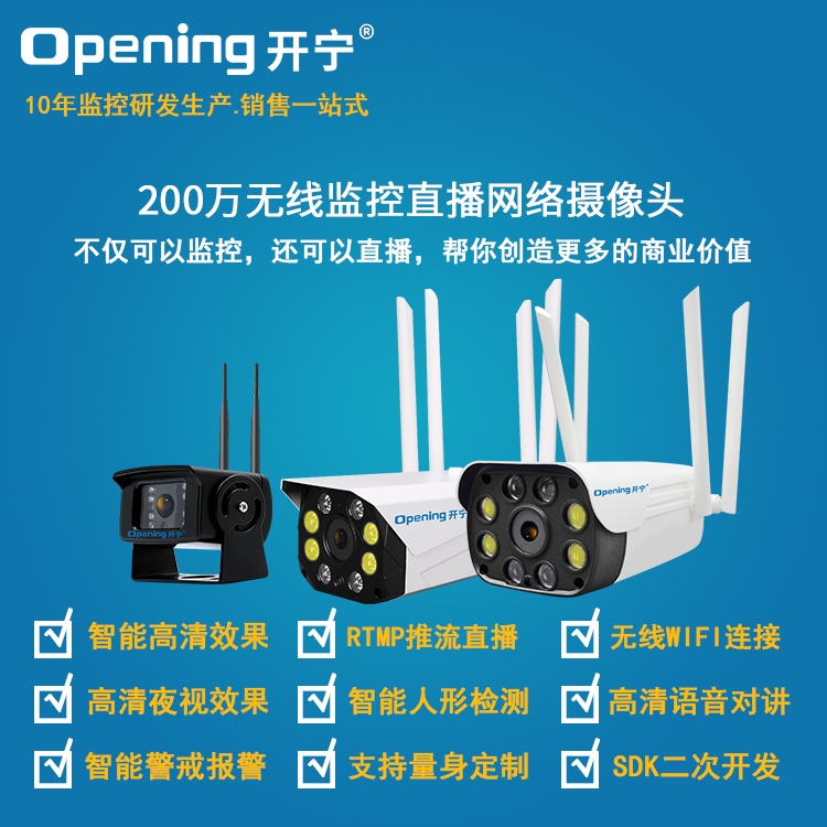 6、RTMP推流直播高清攝像頭;可生成監(jiān)控直播二維碼,只需掃碼即可觀看監(jiān)控直播;