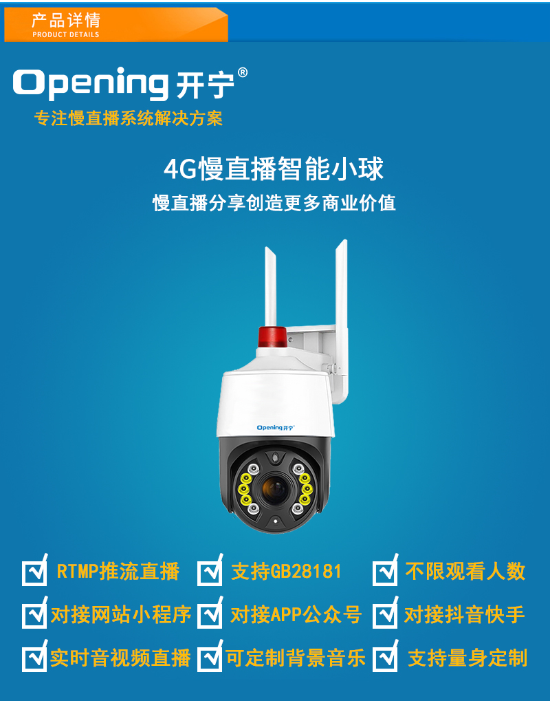 - 1、300萬4寸4G6倍變焦慢直播智能球機,一個小球就是一套慢直播系統;支持水平和垂直旋轉;