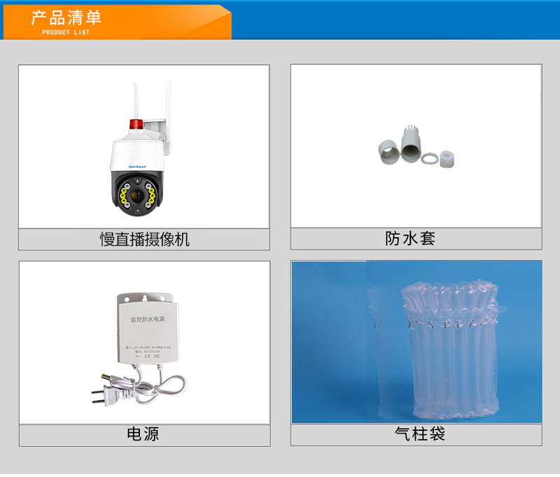 13、內置高清保真拾音器,有聲有色實時慢直播;高清晰大功率喇叭,APP語音對講;DC12V供電;