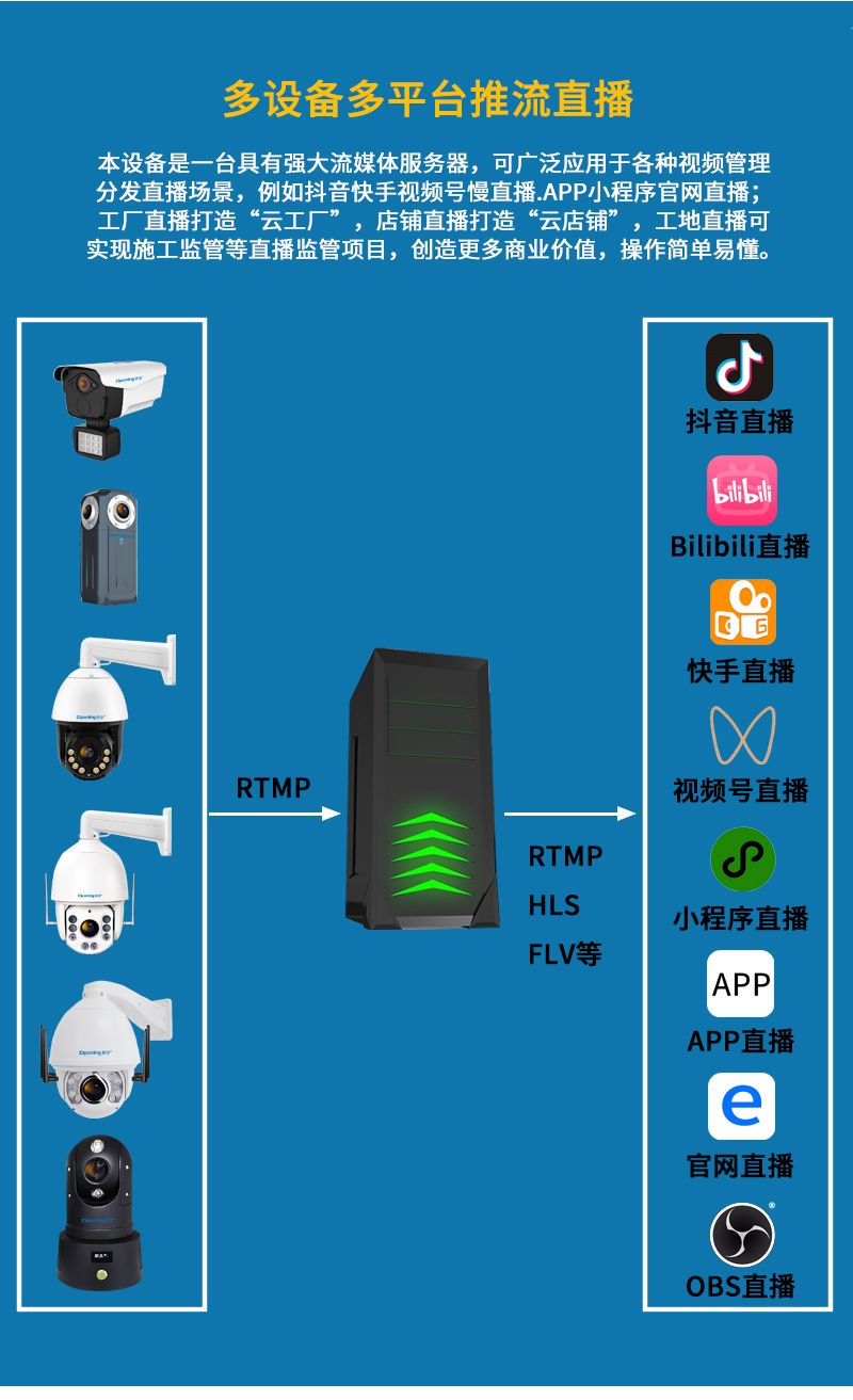 3.支持標準RTMP協議,兼容RTMP主流直播平臺
