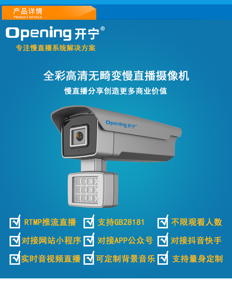 - 1、300萬/500萬/800萬/1200萬雙光慢直播無畸變高清攝像機,一個攝像機就是一套慢直播系統(tǒng);