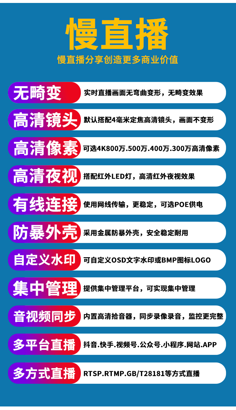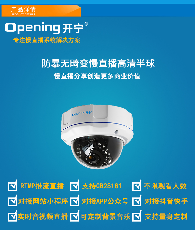 - 1、200萬/300萬/500萬/4K無畸變直播網絡高清半球,一個半球就是一套監控直播系統;