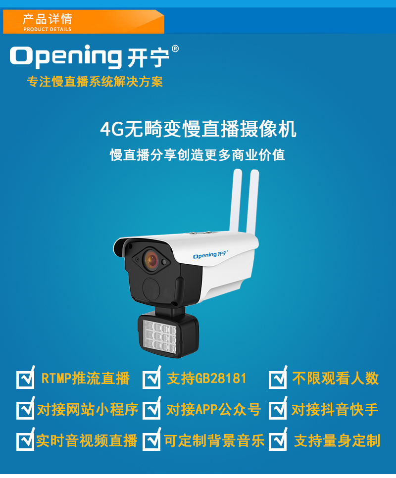 - 1、4G300萬/500萬/800萬/1200萬無畸變雙光慢直播高清攝像機,一個攝像機就是一套慢直播系統;