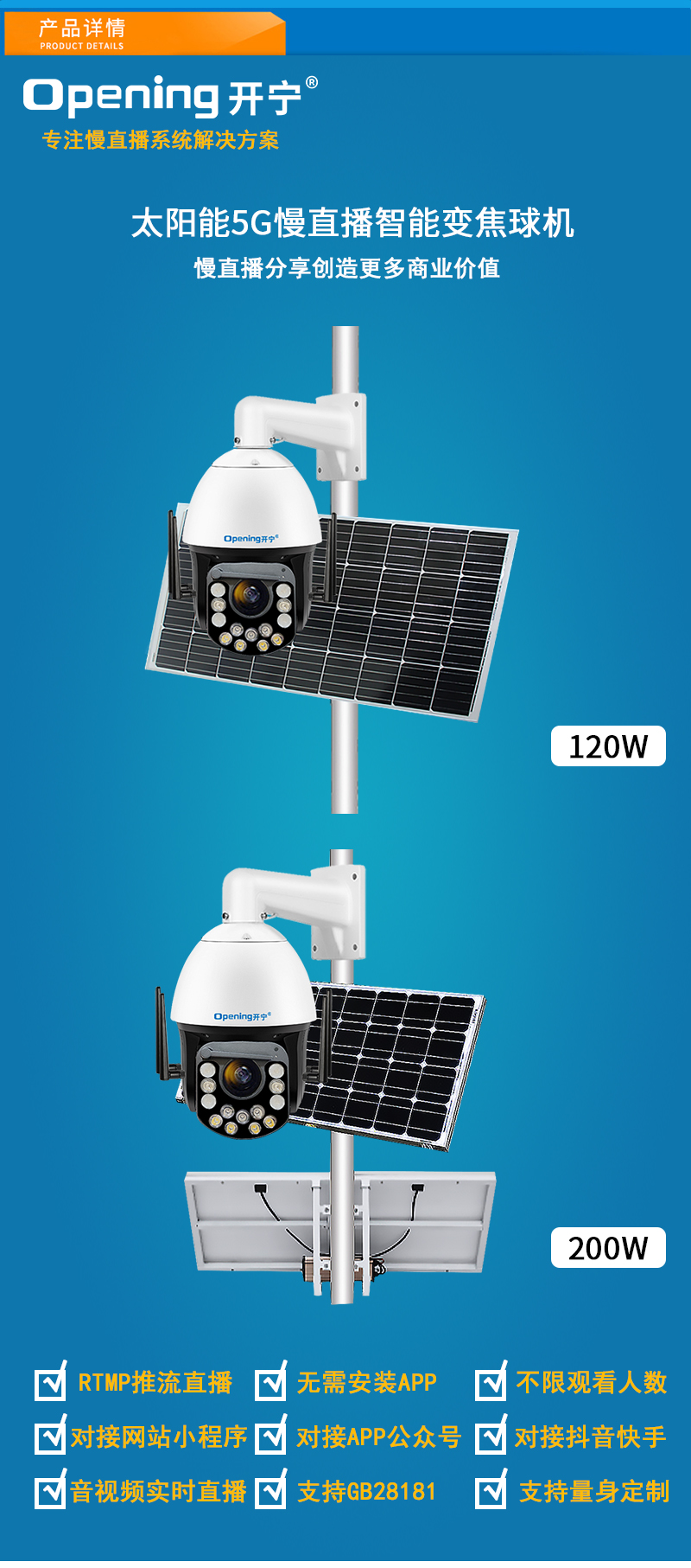 - 太陽能5G6寸4K全彩慢直播雨刷球機