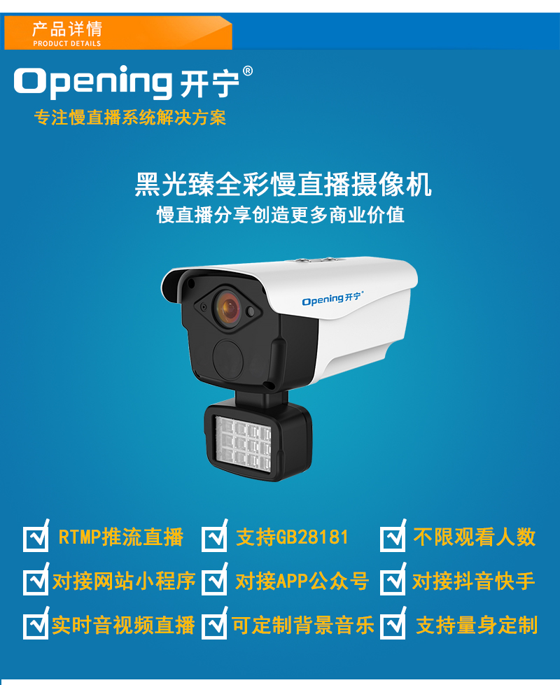 - 開寧4K黑光臻全彩慢直播攝像機