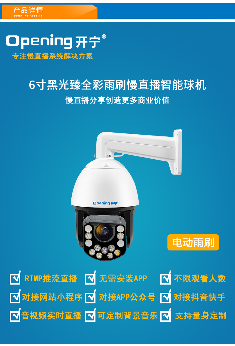 - 開寧4K黑光臻全彩慢直播雨刷智能球機